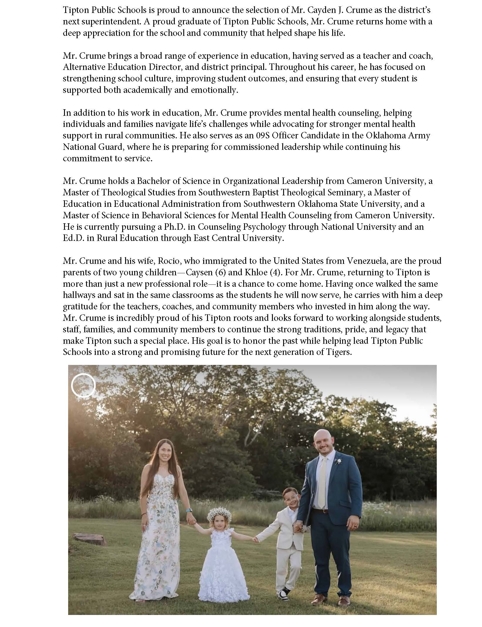 To provide an educational service designed to ensure quality educational, social, and vocational development for each child serviced by Tipton Public Schools in order to empower all students to succeed in a constantly changing world.